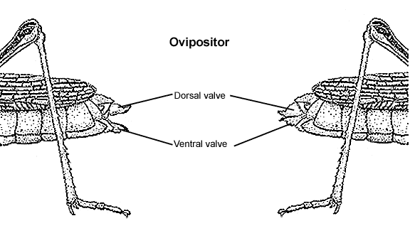 Alternately, female grasshoppers have ovipositor dorsal and ventral valves which can be used to separate some species.