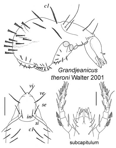 Walter DE. 2001. Endemism and cryptogenesis in ‘segmented’ mites: A review of Australian Alicorhagiidae, Terpnacaridae, Oehserchestidae and Grandjeanicidae (Acari, Sarcoptiformes). Australian Journal of Entomology 40: 207-218.