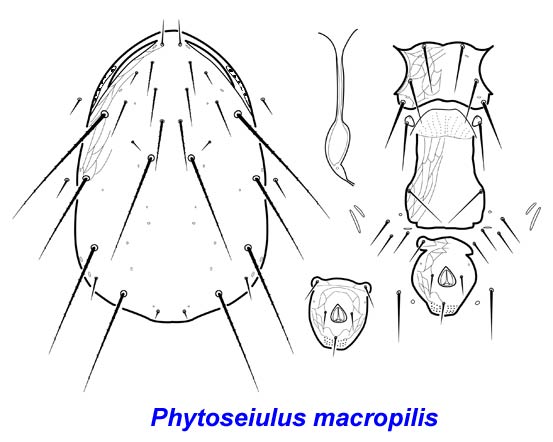 Phytoseiulus macropilis  female dorsum, venter, spermatheca