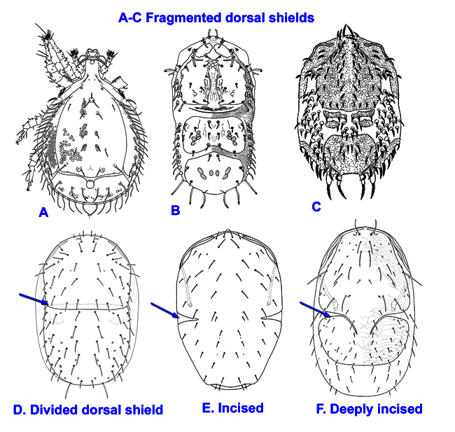 shields usually well developed, the latter fused anteriorly to podonotal shieldpodonotal shield: