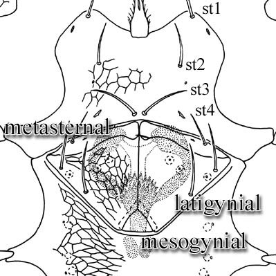 region with separate mesonotal and pygidial elements. Venterventer: