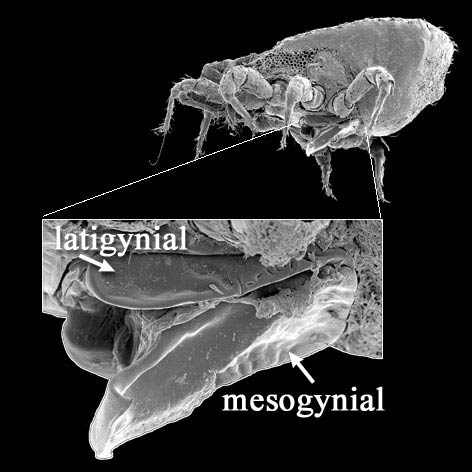 Parasitina (Mesostigmata) have enlarged metasternal shields that superficially resemble the trigynaspid condition, and some primitive Uropodina (e.g., Trachytes) do retain separate latigynial shields. However, neither of these taxa retain av4/pv4 on tarsustarsus: