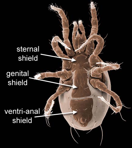 Pachylaelapid sternal shield and showing a single genital shield (DEW)