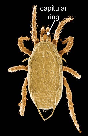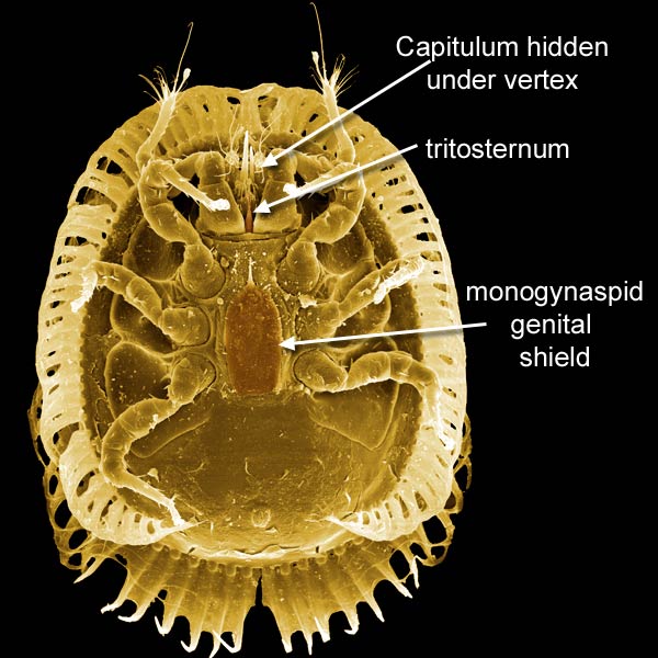 Female uropodid mite (DEW) with capitulum hidden under vertex