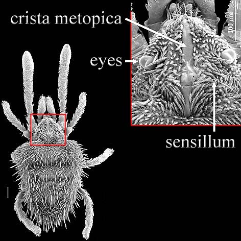 , often mounted on a linear sclerotised plate (the crista metopica); eye lenses almost always well-developed. Genital papillaegenital papillae: