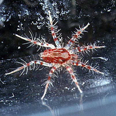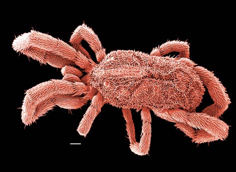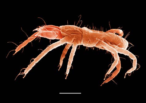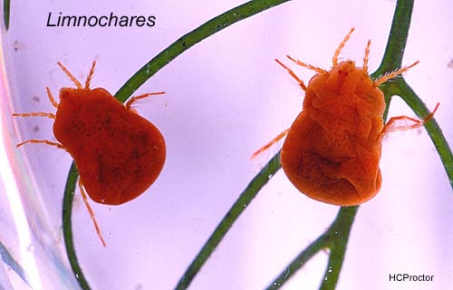 whirligig mites, footballers, anystids, caeculids, red velvet mites, water mites, scrub itch mites, chiggers