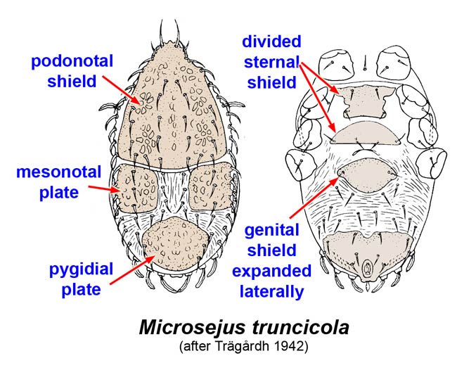 Microsejus truncicola Trägårdh is the only known species and is associated with tree stumps in boreal forests. The deutonymphdeutonymph: