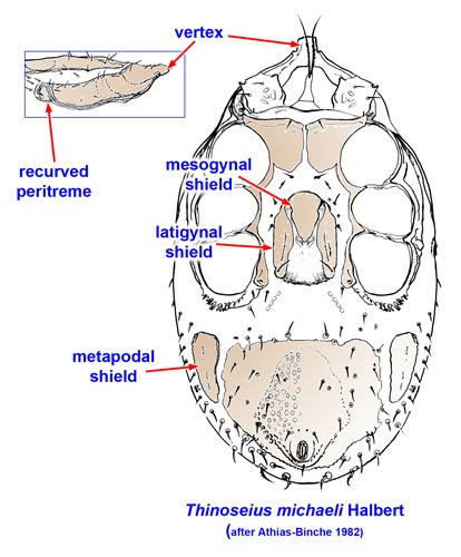 Athias-Binche F. 1982. A redescription of Thinozercon michaeli Halbert, 1915 (Uropodina: Thinozerconoidea). Proceedings of the Royal Irish Academy (Section B) 82B: 261–276.