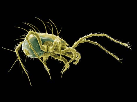 (= palp apotele, palptarsal claw) the most distal segment of the palp; absent in Acariformes, claw-like in Opilioacarida, and a subdistal, tined structure in the Mesostigmata. 2-tined.............................. Kleemannia