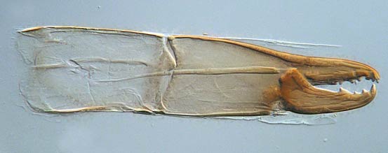 with median process and weakly lateral teeth............. G. fimbriatus Karg