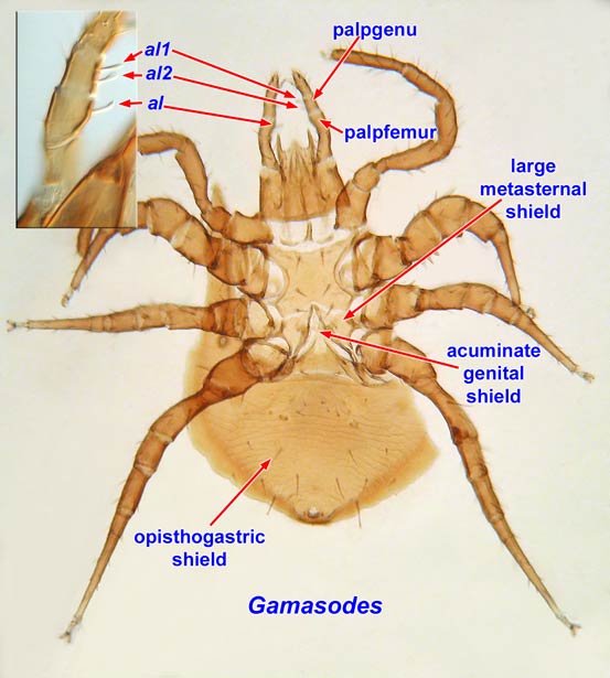 Superorder Parasitiformes » Order Mesostigmata » Suborder Monogynaspida » Infraorder Gamasina » Hyporder Parasitiae » Superfamily Parasitoidea » Family Parasitidae » Subfamily Parasitinae » Genus Gamasodes