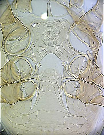 -trifurcate. Female sperm induction pores near bases of coxae IV. Males with genital opening at basebase: