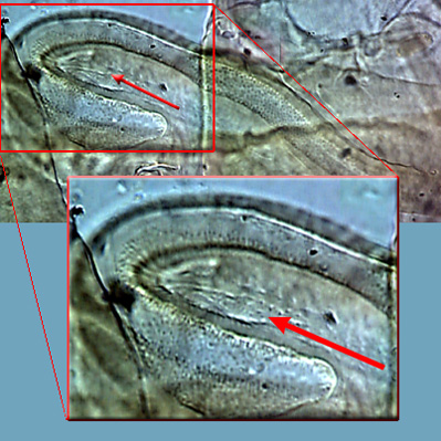 a brush like extension of the arthrodial membrane at the articulation of the movable and fixed digits in some Mesostigmata. Not to be confused with cheliceral excrescences that are produced from openings in the movable digit.