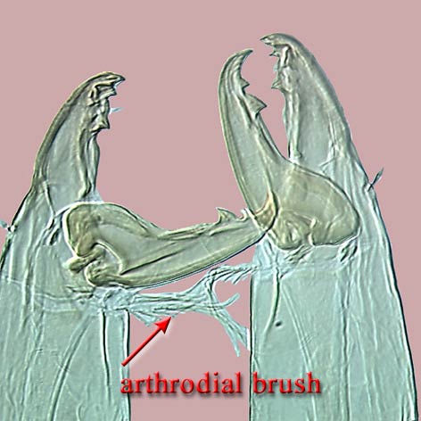 peritreme); some Ascidae and Pachylaelapidae: Zygoseius (lack arthrodial brusharthrodial brush: