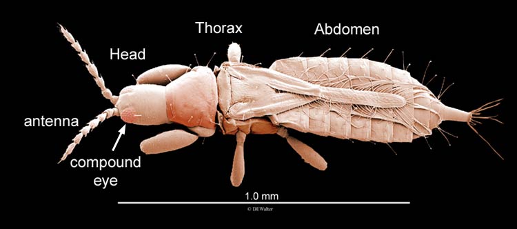 Comments: Insects have a head with antennae (and often compound eyes); a thorax with 3 pairs of legs (and often 1–2 pairs of wings); and an abdomen that usually lacks styli, but may have an ovipositorovipositor: