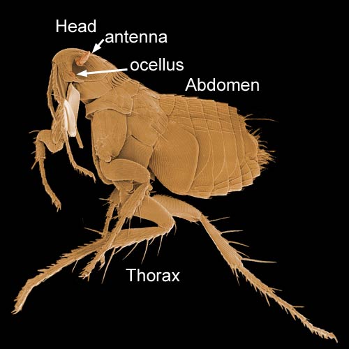 thorax, head with antennae, compound eyes.