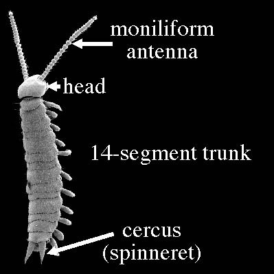 , gonopore on trunk segment IV, and cerci used as spinnerets and flanked by well developed trichobothriatrichobothrium: