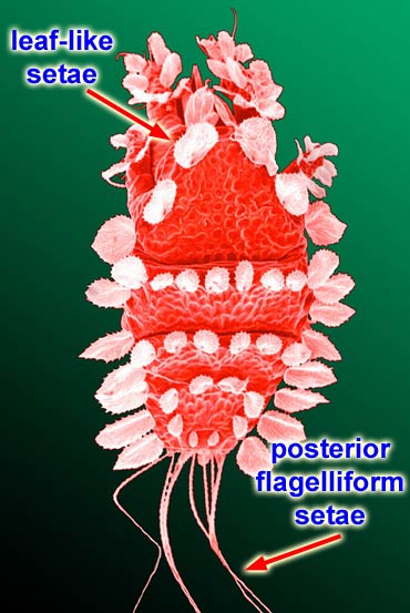 setae expanded, leaf-like; posteriorposterior: