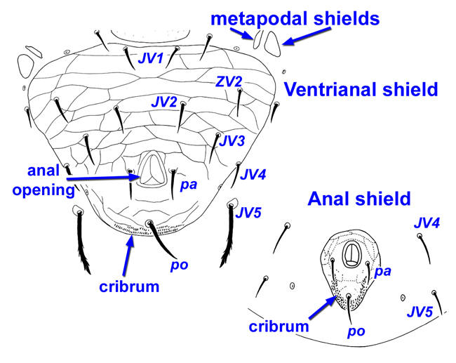 and anal regions. The female ologamasid mite in Figures 6 and 7 has a large ventrianal shieldventrianal shield: