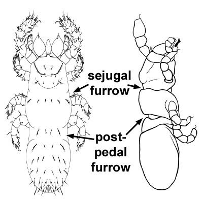 Species of Stigmalychus, Micropsammus, and a few other endeostigmatans have a constriction of the bodybody: the idiosoma of mites. just behind legs IV, more or less at the juncture of bodybody: the idiosoma of mites. regions C and D.