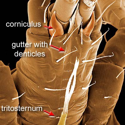 (pl. corniculi) (also, external malae) a usually horn-like process (sometimes toothed, bifurcate, trifurcate, spine-like, spatulate, or membranous) on the subcapitulum of parasitiform mites that usually supports the salivary styli. A toothed corniculus could be confused with a rutellum, a possibly homologous structure in Acariformes and Opilioacarida. Phytoseiid image is spatulate corniculus., but some have trichobothriatrichobothrium: