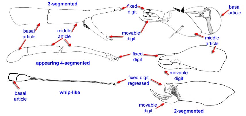 . However, in some uropodid mites (Fig. 1), the chelicerae are very elongate and the middle article is subdivided.