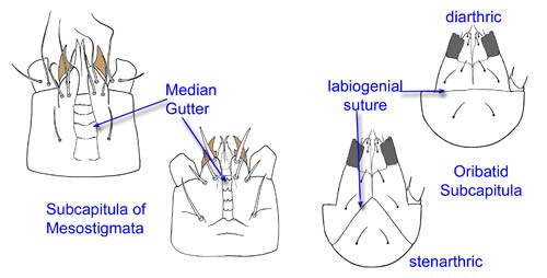 serve to redirect fluids (digested prey, hemolymph, salivary secretions) during feeding. Acariformes lack this median gutter, apparently because their subcapitulumsubcapitulum: