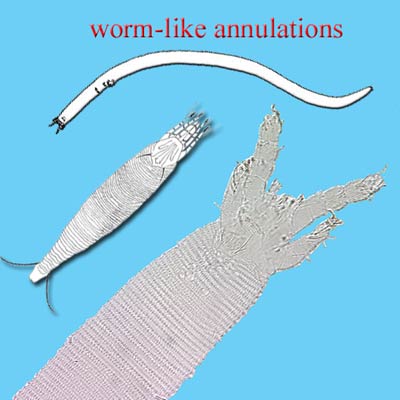 divisions of the plates are called scissures, and 1–2 are commonly present in certain kinds of oribatid mites (e.g., Enarthronotides); many Mesostigmata have divided dorsal shields. If several separate plates are present, the mites may seem to be segmented; however, true segmental folds are present only in some Endeostigmata. In contrast, the important plant-parasites in the Eriophyoidea have worm-like bodies with a series of annulations, a condition also found in others in the Endeostigmata.