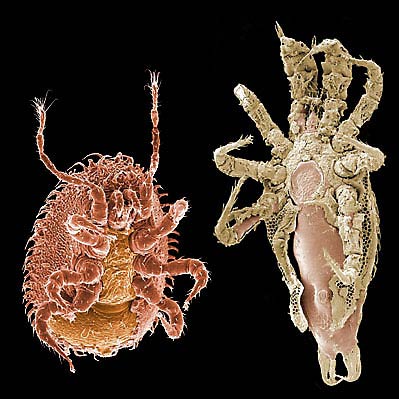 Finally, most mites have a fairly sparse array of setae (mechanoreceptors) on their bodies. However, some have a dense, furry pelage (e.g., some Endeostigmata and Anystina) or a covering of large leaf-like or plate-like setae (e.g., some Endeostigmata, Enarthronotides, Brachypylina, and Eleutherengonides). Some important parasites of bees (e.g., Tropilaelaps spp. in Monogynaspida) also have a dense covering of setae.