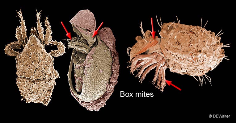 to which bits of soil and detritus may adhere as a kind of additional layer of armor (or perhaps tactile or visual camouflage). A similar, although less dense adherent layer of pollen, fungal spores and the like may be found on species of Fungitarsonemus (Prostigmata, EleutherengonaEleutherengona:
