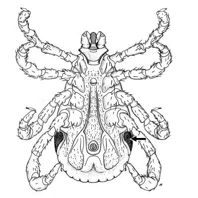 In the Parasitiformes, spiracular openings and a tracheal system were primitively present as four pairs of dorso-lateral stigmata in the Opilioacarida that are added sequentially during development. In Holothyrida, ticks (Ixodida), and Mesostigmata these are reduced to a single pair of spiracular openings in the region of legs IV. In soft ticks (Argasidae) the stigmatal opening is lateral, but in hard ticks it is present on a distinctive sieve plate behind legs IV. In Mesostigmata, the stigmata are lateral and usually associated with peritremes, microtuberculate and slit tubes that run anteriorly from the stigmastigma: