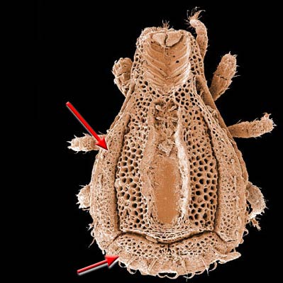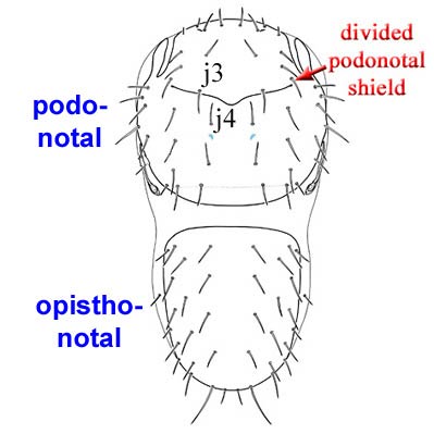 podonotal, mesonotal and pygidial areas in the immatures and an entireentire: