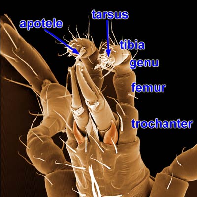 (pl. tarsi) the subdistal leg segment between the tibia and the pretarsus (apotele).