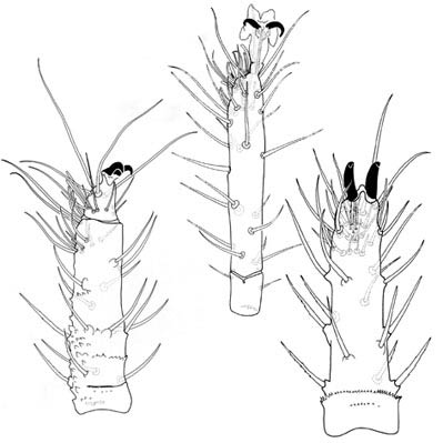 with the claws and ambulacrum may be reduced or lost and sometimes highly developed setae are present.