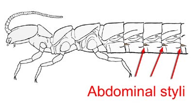 Diplurans, proturans, and thysanurans often retain remnants of the abdominal legs of their crustacean ancestors in the form of 1–2 segmented styli.