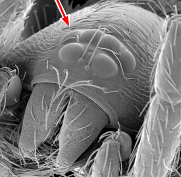 Many mites are blind, but when present, eyes are found on the 'shoulders' region of the bodybody: