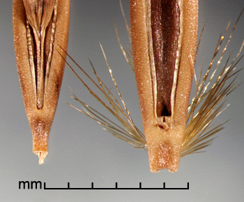 callus hairs | to 7.5 mm long (1/5 length of lemma) | to 5.5 mm long (1/4 length of lemma) |
