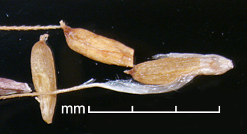Distinguishing characteristic of Chrysopogon aciculatis: pedicels glabrous and more than half the length of sessile spikelet.
