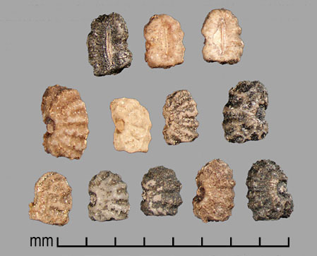 Commelina seeds (like many in the family Commelinaceae) have a linear hilum and an embryotega.