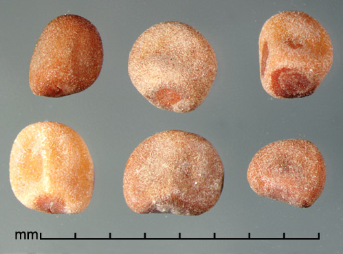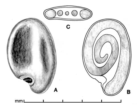 Characters that can help distinguish between species are size, shape, color, seed coat texture, and morphology of hilar area (size, color, and hilum type).