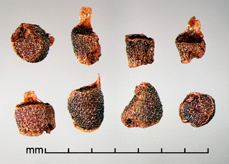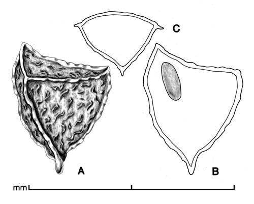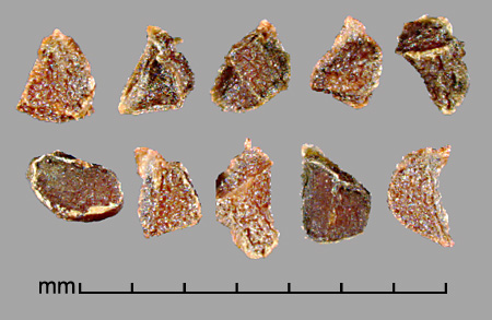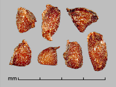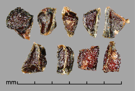 Fruit a 3-valved loculicidal capsule with numerous seeds. Seeds angular, variously shaped, ca. 1–2 mm in diameter. Reddish-brown to black, edges forming membranous ridges. Testa glossy, rugose-reticulate. Embryo small, linear; endosperm present.