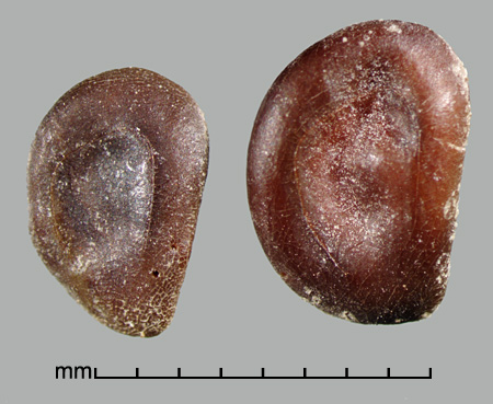 Seeds obovate or D-shaped in outline, ca. 6.5–9 mm long, 4.4–5.5 mm wide. Pleurogram average in size. Lens sunken.