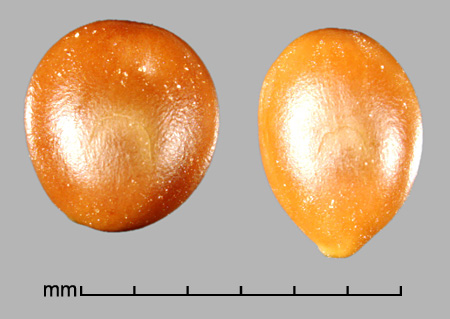 Seeds obovate in outline, 4.5–6.5 mm long, 3.5–4.5 mm wide, ca. 1 mm thick, umbo absent, oblong in cross section. Pleurogram distinctly basal, broadly open.