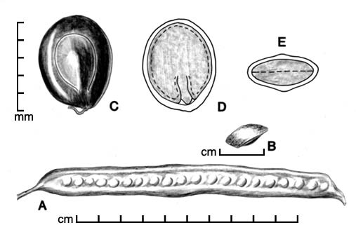 NOTE: Only six seeds of Prosopis pallida were available for examination. Therefore, the description and images in this fact sheet may not be representative of this species’ seeds.