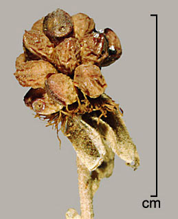 It is frequently difficult to impossible to distinguish Rubus species by their fruits. Drupelets of Rubus species look very similar, and there is much variability within species. It is beyond the scope of this page to determine if there exist drupelet characters diagnostic for the many species within the R. fruticosus complex.