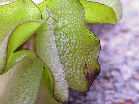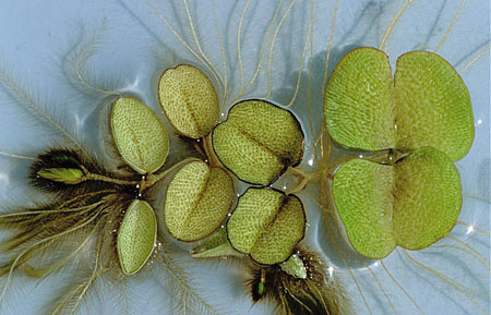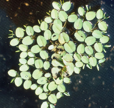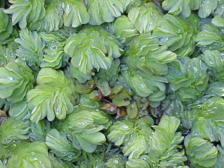 Although the members of the Salvinia complex are difficult to distinguish, the eggbeater-shaped hairs are diagnostic for this group; the non-noxious Salvinias do not have them.