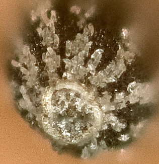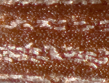 Fruit an achene, elliptic, straight to somewhat curved, 1.4–2.75 mm long, 0.3–0.6 mm in diameter; cross-section +/– terete; surface green when young, brown at maturity, sparsely pubescent in several (ca. 9) rows along the length of the fruit. Scar basal, cup-shaped. Pappus white, 2–3 times as long as achene, easily deciduous, often absent, leaving a white apical collar. Style base white, sometimes protruding beyond the apical collar. Embryo spatulate; endosperm absent.