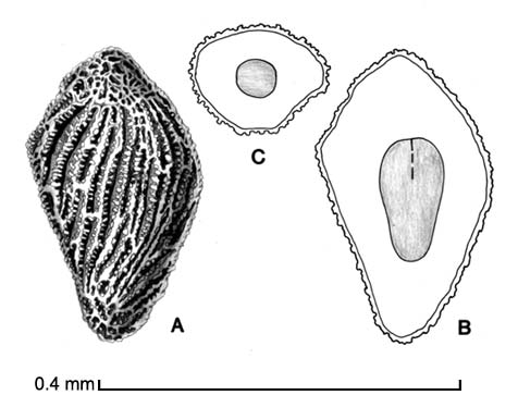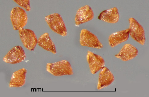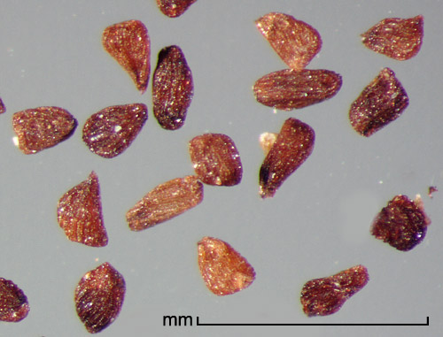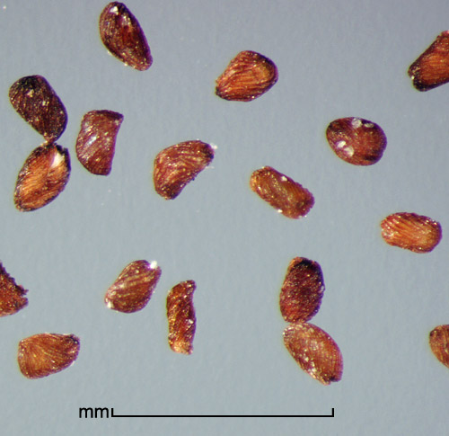 Fruit a loculicidal capsule with numerous seeds. Seeds elliptic, ovate, oblong, occasionally D-shaped, triangular, rhombic, or irregular; often twisted or angled from crowding or position in capsule; tiny, dustlike, 0.2–0.6 mm long, 0.1–0.3 wide and thick. Orange to golden-brown, light to dark brown, or gray to blackish; sometimes sparkling with colored light at high magnification. Surface glabrous, with prominent often ropelike longitudinal or diagonal reticulations that sometimes appear as closely spaced ridges rather than reticulations and are often twisted in appearance. Embryo linear; endosperm present.