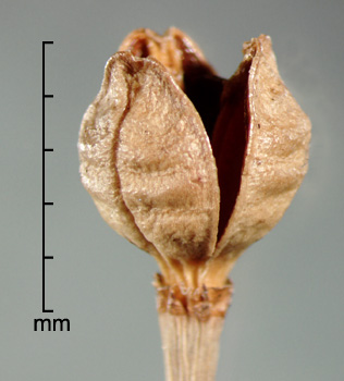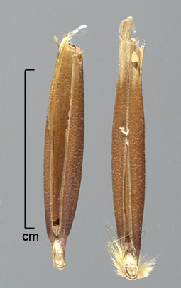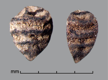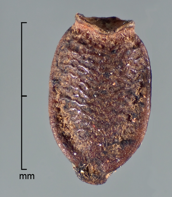 A, utricle with perianth; B, utricle; C, seed; D, longitudinal section of fruit showing embryo; E, transverse section of fruit showing embryo; drawing by Lynda E. Chandler
