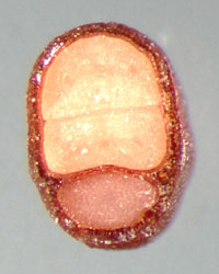 A, achene; B, longitudinal section of achene showing embryo in situ; C, transection of achene; drawing by Lynda E. Chandler